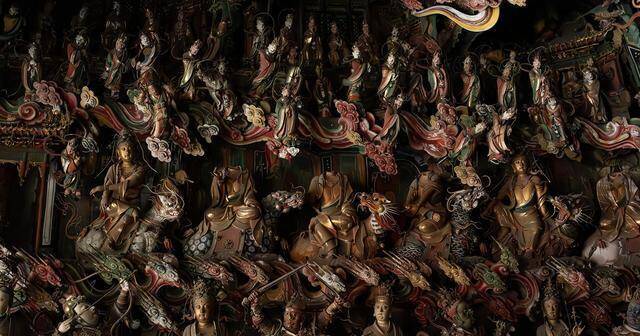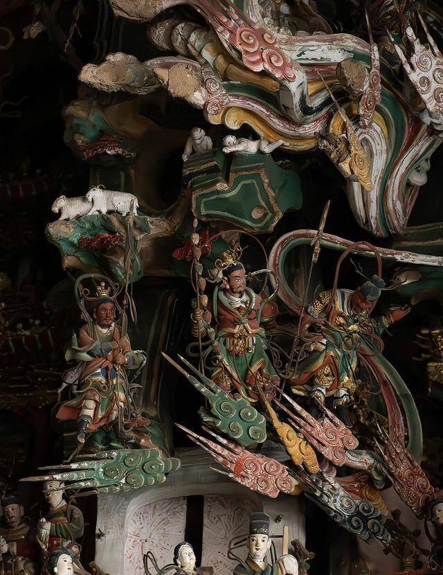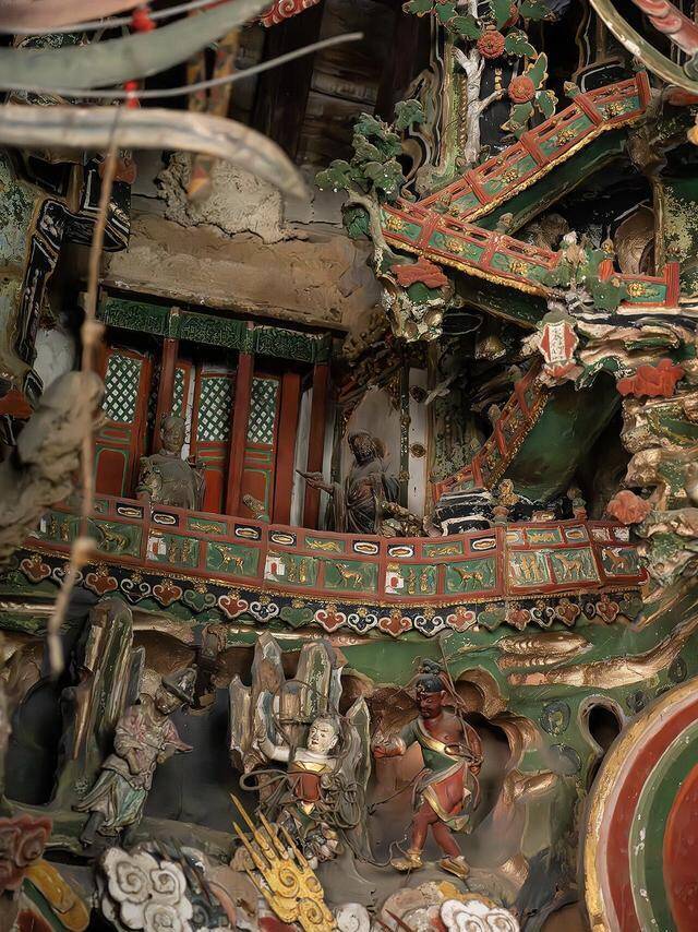 最让东谈主佩服的,是这些泥像的细节与表率,最大的主尊约两米,最小的却只消2厘米,指尖大小的泥像,眉眼、衣纹依旧分解可见,莫得涓滴弄脏。匠东谈主用圆塑、悬塑、浮塑等多种手法,把矿物心情细细敷上,历经四百多年风雨,色调依旧鲜亮,沥粉贴金的工艺让泥像在微光里泛着温润的光泽,哪怕是最小的一件,都藏着极致的匠心。而四层悬塑的布局,还暗合着修行的意境,自下而上,对应着自愿、觉他、圆满、顶层的进阶,把宗教哲理藏进视觉景不雅里,让平常庶民在仰望神像时,雅雀无声就能感受到修行的真义,这是古东谈主的智谋,亦然民间艺术最动东谈主的场所。