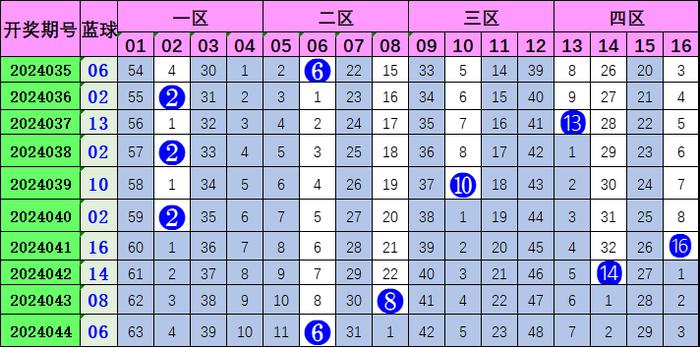 蓝球开出号码06